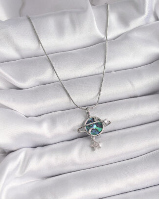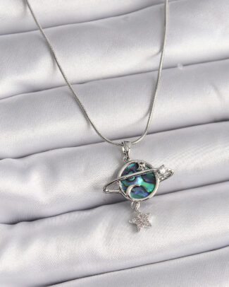 316L Çelik Gümüş Renk Zincir Zirkon Taşlı Gezegen Model Kadın Kolye