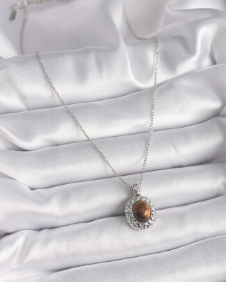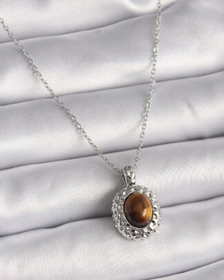 316L Çelik Gümüş Renk Zincir Kehribar Boncuk Model Kadın Kolye