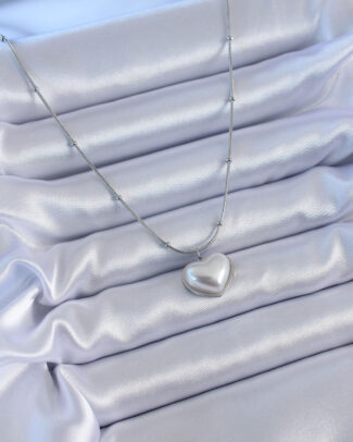 316L Çelik Gümüş Renk İncili Kalp Model Minimal Top Detay Kadın Kolye