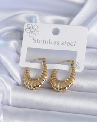 316L Çelik Gold Renk İşlemeli Halka Model Kadın Küpe
