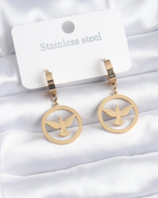 316L Çelik Gold Renk Kuş Model İşleme Detay Kadın Küpe