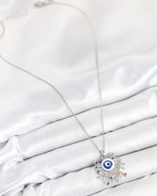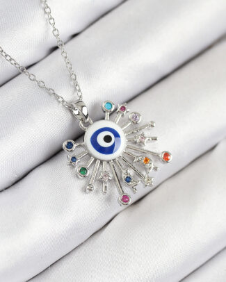 316L Çelik Zirkon Taşlı Nazar Model Gümüş Renk Kadın Kolye