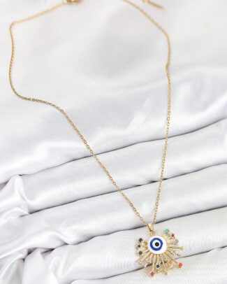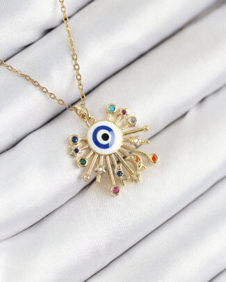 316L Çelik Zirkon Taşlı Nazar Model Gold Renk Kadın Kolye