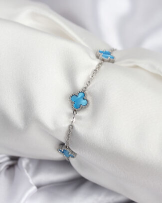 316L Çelik Gümüş Renk Buz Mavisi Baby Boy Yonca Kadın Bileklik