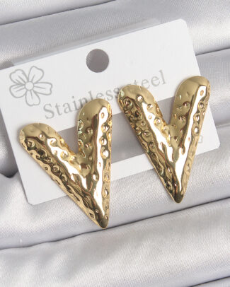 316 Çelik Gold Renk İşlemeli Kalp Model Kadın Küpe