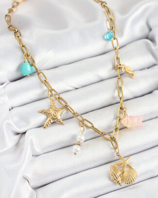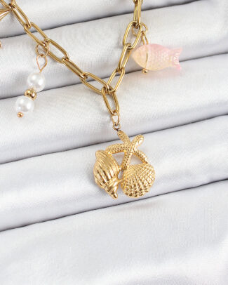 316L Çelik Gold Renk Deniz Yıldızı ve Deniz Kabuğu Konsept Kadın Kolye