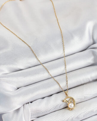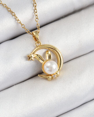 316L Çelik İnci Detaylı Hilal Tavşan Model Gold Renk Kadın Kolye