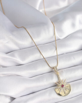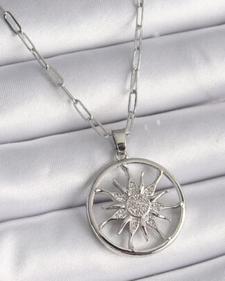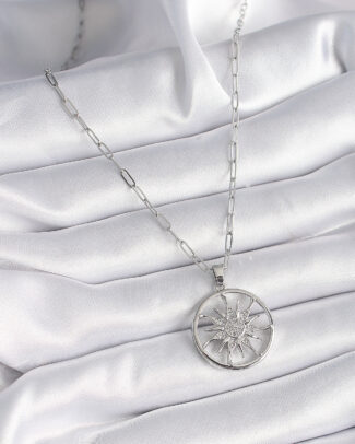 316L Çelik Gümüş Renk Zirkon Taşlı Güneş Madalyon Model Kadın Kolye