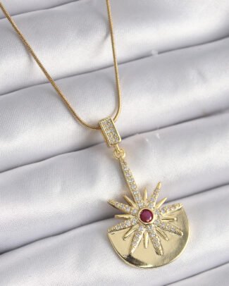 316L Çelik Gold Renk Zirkon Taşlı Yıldız Model Kadın Kolye