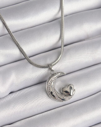 316L Çelik Gümüş Renk İtalyan Zincir Zirkon Taşlı Halil Figür Kalp Detay Kadın Kolye