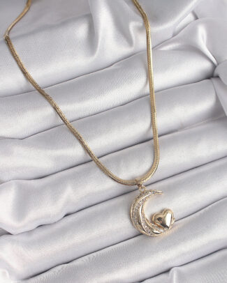 316L Çelik Gold Renk Çelik İtalyan Zincir Zirkon Taşlı Halil Figür Kalp Detay Kadın Kolye