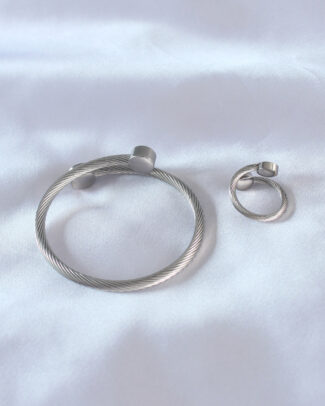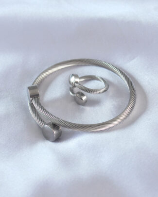 Çelik Gümüş Renk Sıkı Burgu Model Erkek Bileklik Yüzük Seti