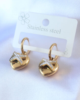 316L Çelik Gold Renk Zirkon Taş Detay Kalp Model Kadın Küpe