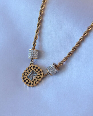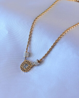 316L Çelik Gold Renk Lotus Model Zirkon Taşlı Burgu Zincir Kadın Kolye
