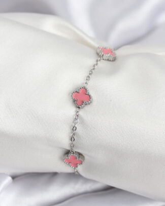 316L Çelik Gümüş Renk Pembe Baby Boy Yonca Kadın Bileklik