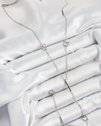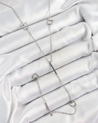 316L Çelik Kelebek Figürlü Y Model Gümüş Renk Kadın Kolye