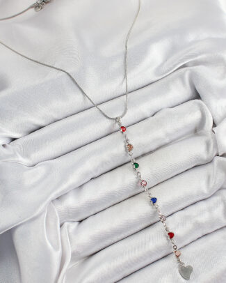 Pirinç Gümüş Renk Karışık Renk Zirkon Taşlı Y Kadın Kolye