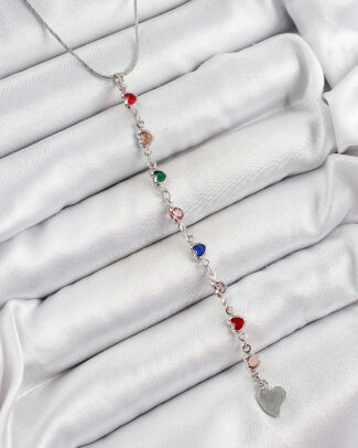 Pirinç Gümüş Renk Karışık Renk Zirkon Taşlı Kalpli Y Kadın Kolye