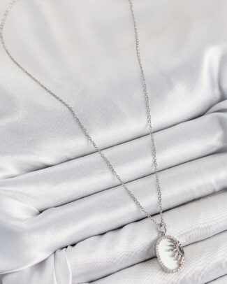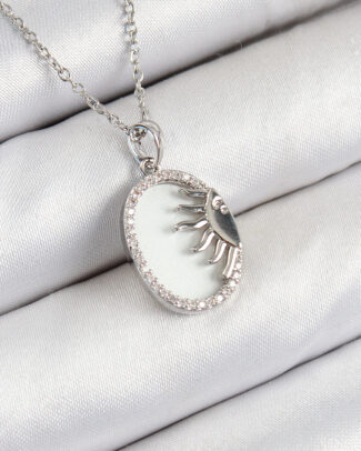 316L Çelik Zirkon Taşlı Yarım Güneş Model Gümüş Renk Kadın Kolye