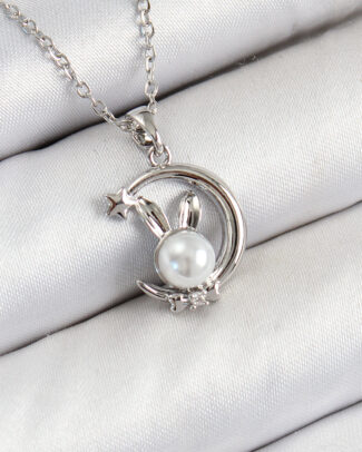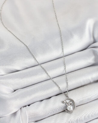 316L Çelik İnci Detaylı Hilal Tavşan Model Gümüş Renk Kadın Kolye