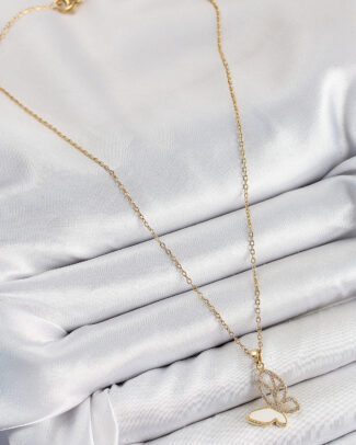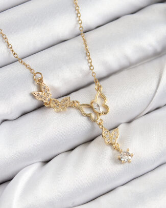 316L Çelik Zirkon Taşlı Kelebek Model Gold Renk Kadın Kolye