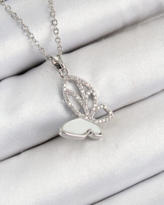 316L Çelik Zirkon Taşlı Kelebek Model Gümüş Renk Kadın Kolye