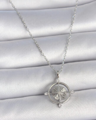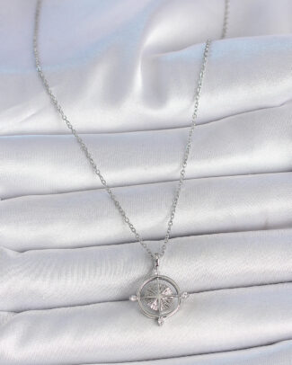 316L Çelik Gümüş Renk Zincir Zirkon Taşlı Pusula Model Kadın Kolye