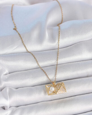 316L Çelik Gold Renk Zincir Zirkon Taşlı Açılır İncili Elmas Model Kadın Kolye