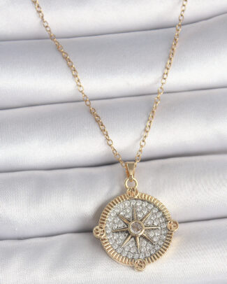 316L Çelik Gold Renk Zirkon Taşlı Pusula Model Kadın Kolye