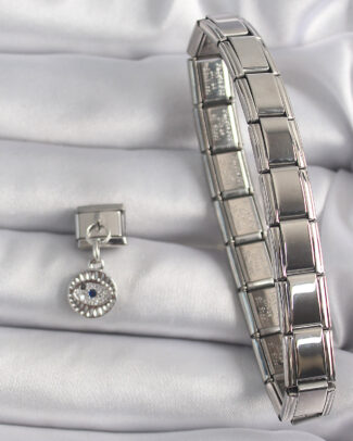 316L Çelik Gümüş Renk Sallantı Zirkon Taşlı Göz Model Nomination Charm