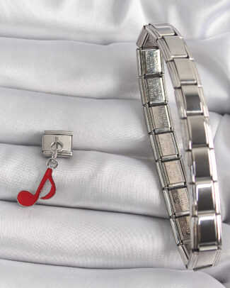 316L Çelik Gümüş Renk Kırmızı Nota Model Nomination Charm