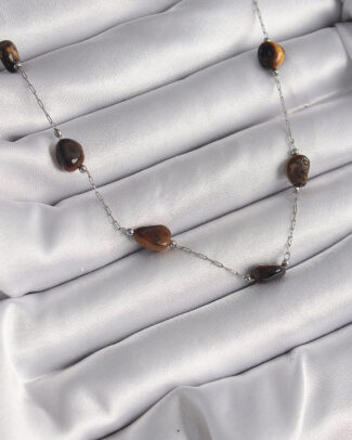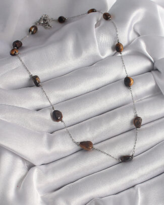 316L Çelik Gümüş Renk Zincir Kahverengi Doğaltaş Model Kadın Kolye