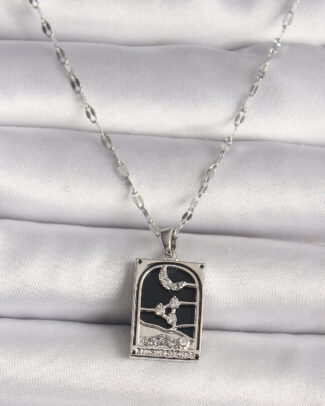 316L Çelik Gümüş Renk Zirkon Taşlı Ay Figürlü Taror Model Kadın Kolye