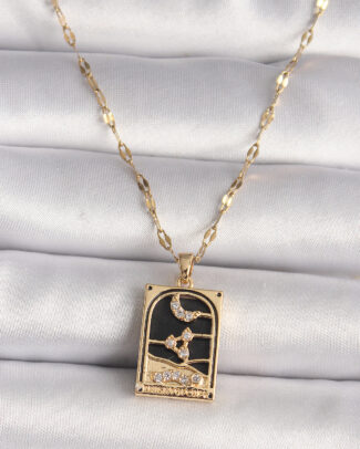 316L Çelik Gold Renk Zirkon Taşlı Ay Figürlü Tarot Model Kadın Kolye