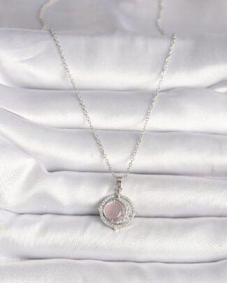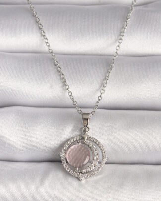 316L Çelik Gümüş Renk Zirkon Taşlı Pembe Sedefli Hilal Model Kadın Kolye