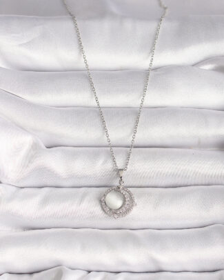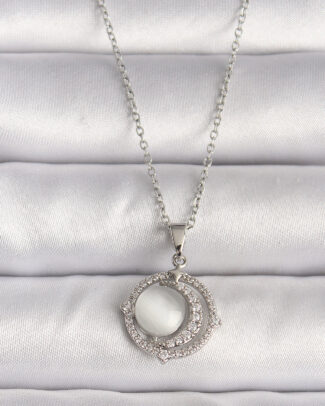 316L Çelik Gümüş Renk Zirkon Taşlı Beyaz Sedefli Hilal Model Kadın Kolye