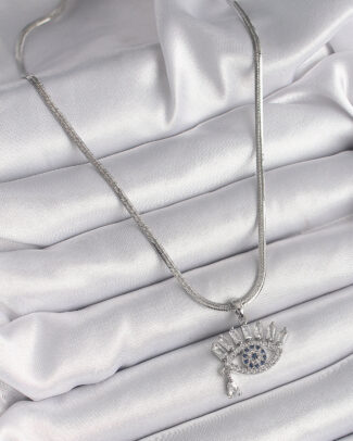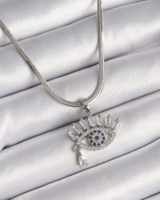 316L Çelik Gümüş Renk İtalyan Zincir Zirkon Taşlı Göz Model Kadın Kolye