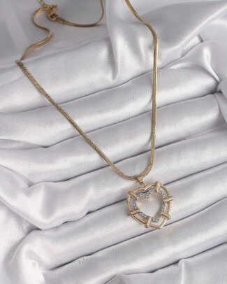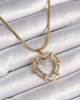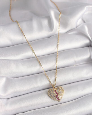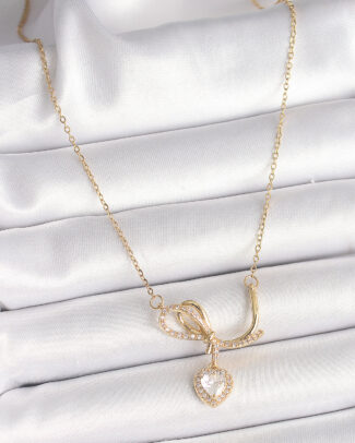 316L Çelik Gold Renk Zincir Zirkon Taşlı Düğüm Sallantı Kalp Model Kadın Kolye
