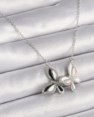 316L Çelik Gümüş Renk Zincir Zirkon Taşlı Renkli Kelebek Model Kadın Kolye