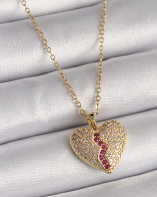 316L Çelik Gold Renk İtalyan Zincir Mix Renk Zirkon Taşlı Kalp Model Kadın Kolye