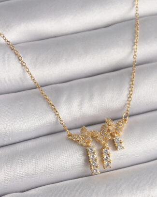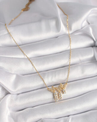 316L Çelik Gold Renk Zincir Zirkon Taşlı Kelebek Model Sallantı Detay Kadın Kolye