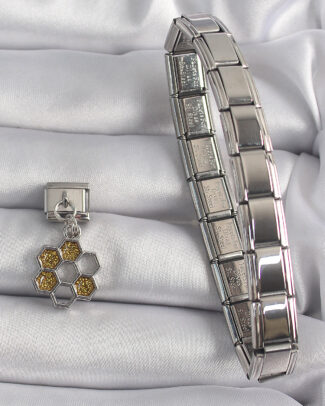 316L Çelik Gümüş Renk Sallantı Simli Bal Beteği Model Nomination Charm