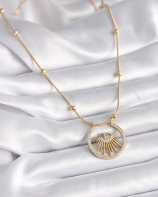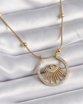 316L Çelik Gold Renk Zirkon Taşlı Göz Model Kadın Kolye