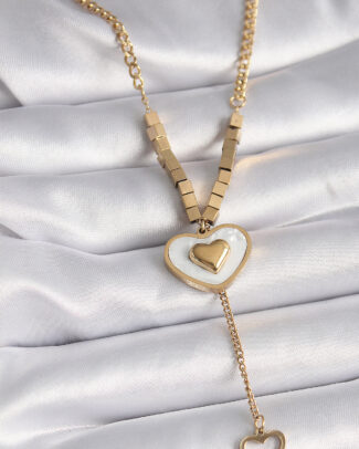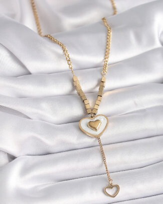 316L Çelik Gold Renk Beyaz Sedefli Kalp Model Sallantı Detay Kadın Kolye