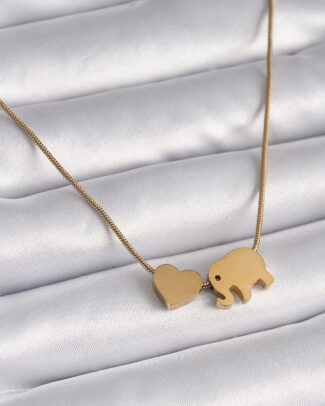 316L Çelik Gold Renk Fil Kalp Figürlü Kadın Kolye