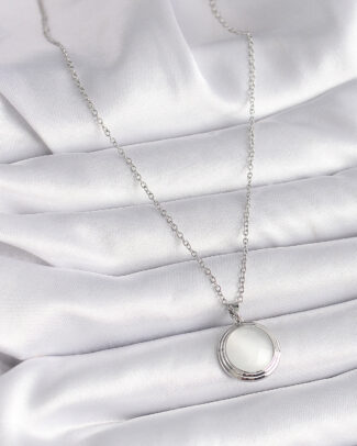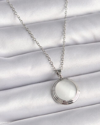 316L Çelik Gümüş Renk Beyaz Sedefli Daire Model Kadın Kolye