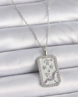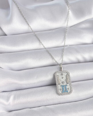 316L Çelik Gümüş Renk Zincir İkizler Burcu Zirkon Taşlı Kadın Kolye