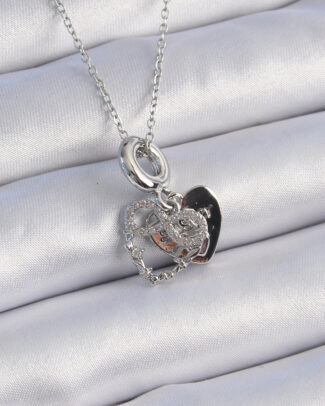 316L Çelik Gümüş Renk Zirkon Taşlı Sonsuzluk Kalp Figür Charm Model Kadın Kolye