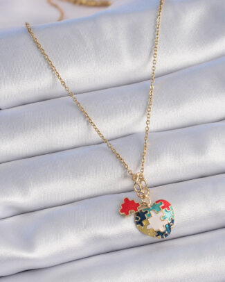 316L Çelik Gold Renk Yapboz Motif Kalp Figür Charm Model Kadın Kolye