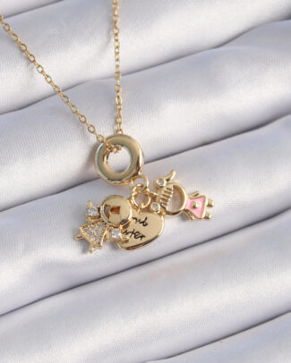 316L Çelik Gold Renk Zirkon Taş Detay Çocuk Figür Charm Model Kadın Kolye